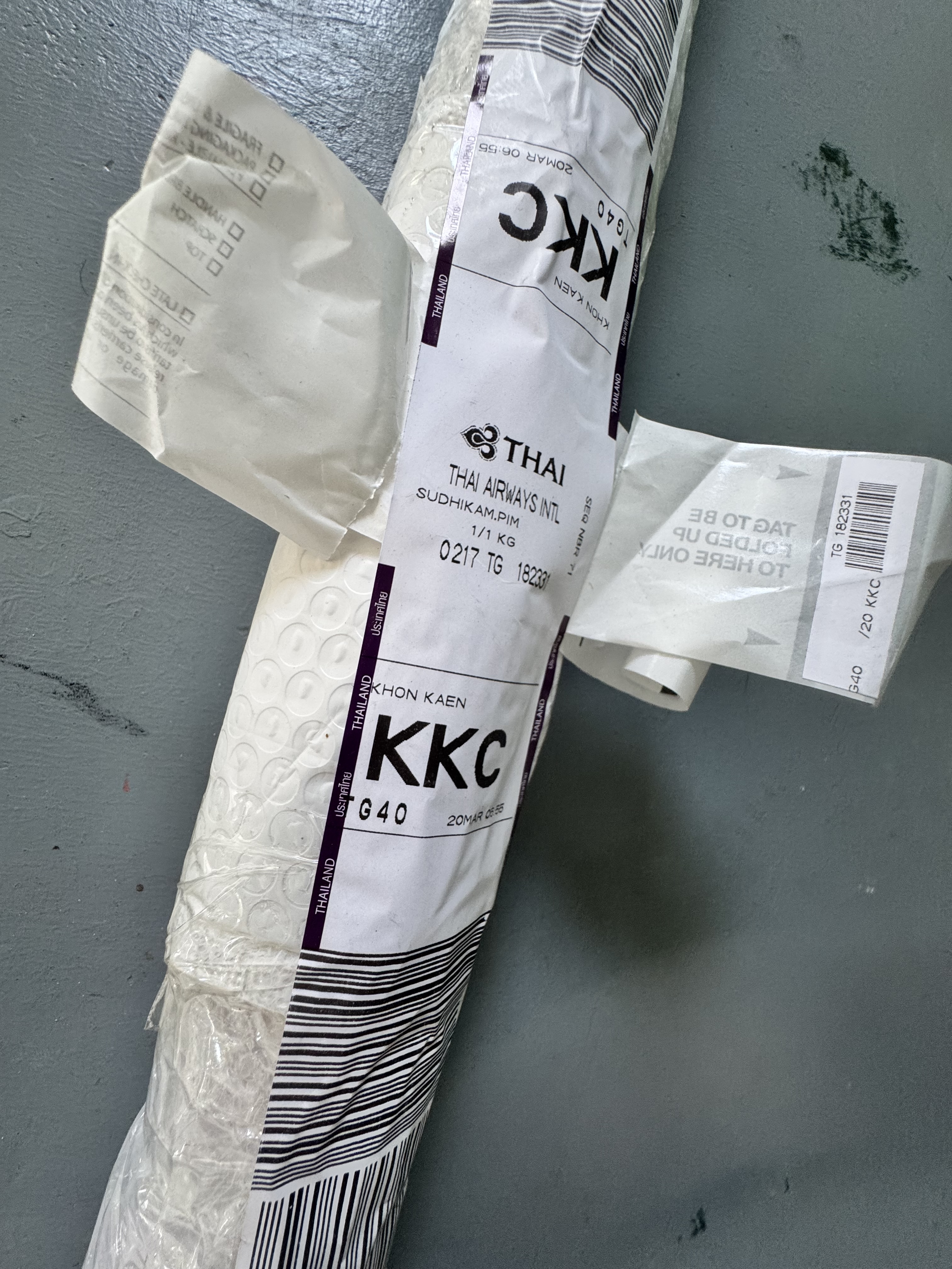 During our workshop in Kumpawapi Lena shared with me a story by *durbahn about a sealed clay vessel dated 1400 years ago said to be an archive of sound. The stage of being sealed or wrapped becomes interesting to me as time is suspended. Later I finished this piece in Bangkok. I packed, wrapped and transported it by airplane. At that moment my art work entered the same stage. It remains there as long as we keep it wrapped.
